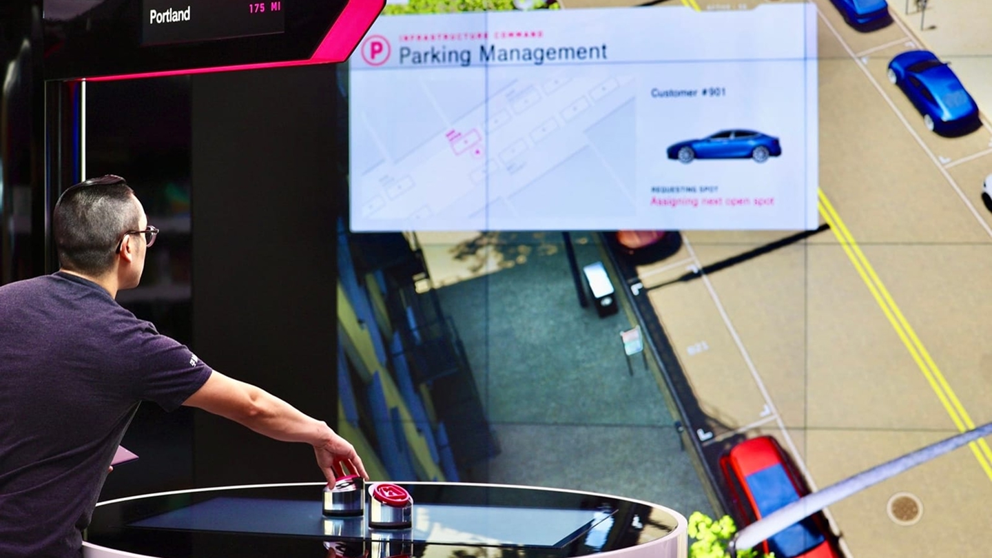 The project involved creating multiple immersive and interactive experiences within T-Mobile's 5G&me Experience Center in Bellevue, Washington. Visitors could navigate a real-time simulations using an Ideum touch table and physical totems, showcasing the transformative power of 5G wireless technology in industries such as Parking Management, Trash Services, Smart Roads, and more.
